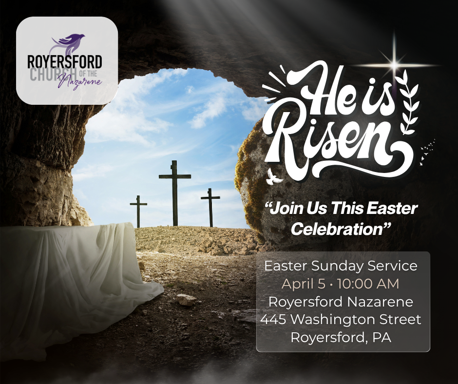 Join us for a joyful Easter Sunday celebration at Royersford Church of the Nazarene as we come together to celebrate the hope, victory, and new life we have in Jesus Christ.