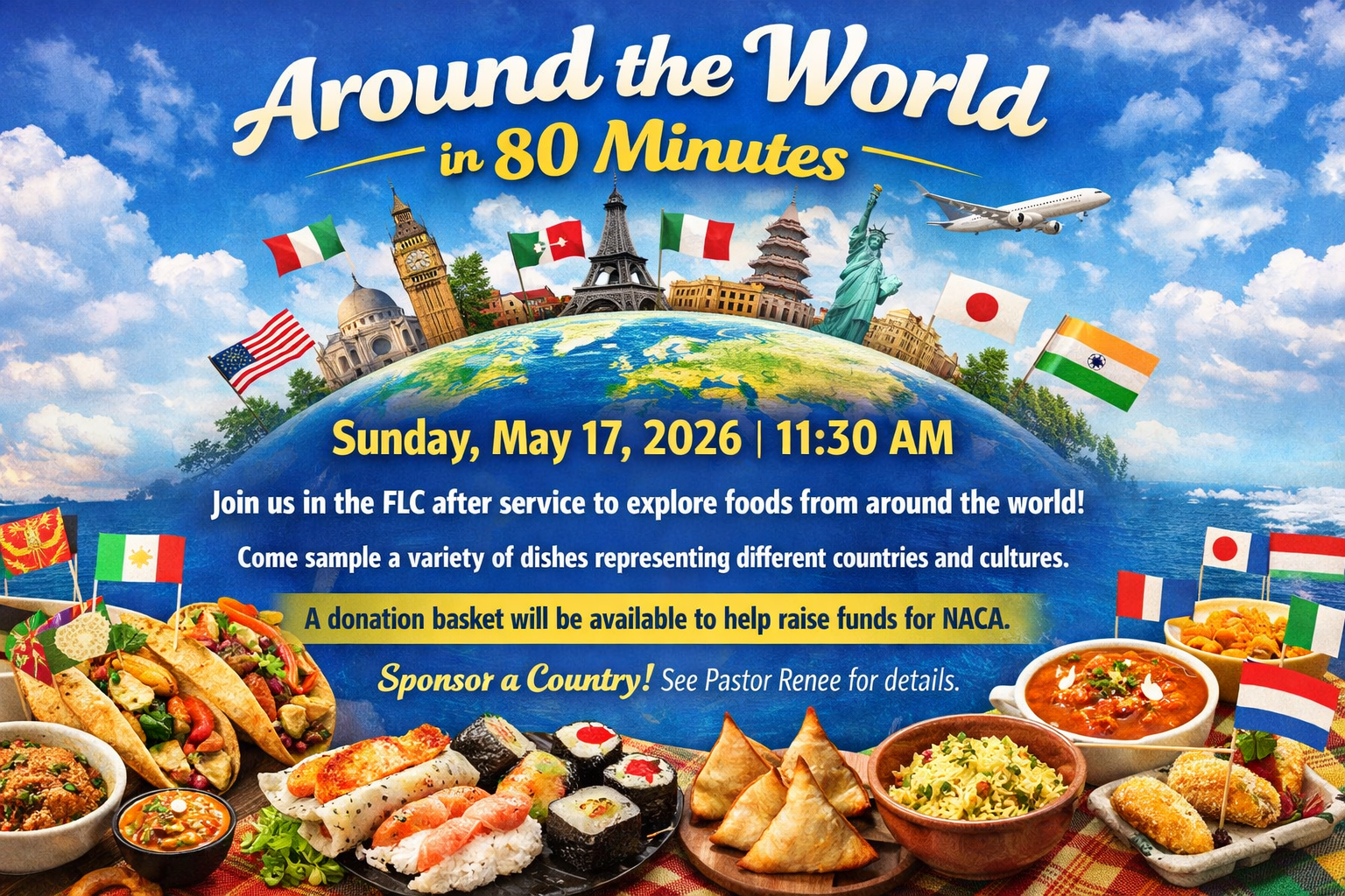 Join us in the FLC after service to explore foods from around the world! Come sample a variety of dishes representing different countries and cultures.